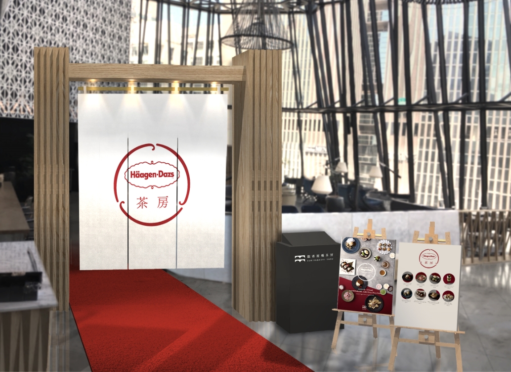 「Häagen-Dazs 茶房」では、洗練された和モダンな空間で、定番のハーゲンダッツ ミニカップ6種類(バニラ、ストロベリー、グリーンティー、クッキー&クリーム、マカデミアナッツ、クリスプチップチョコレート)を使用した創作和スイーツ全8種類を提供する。