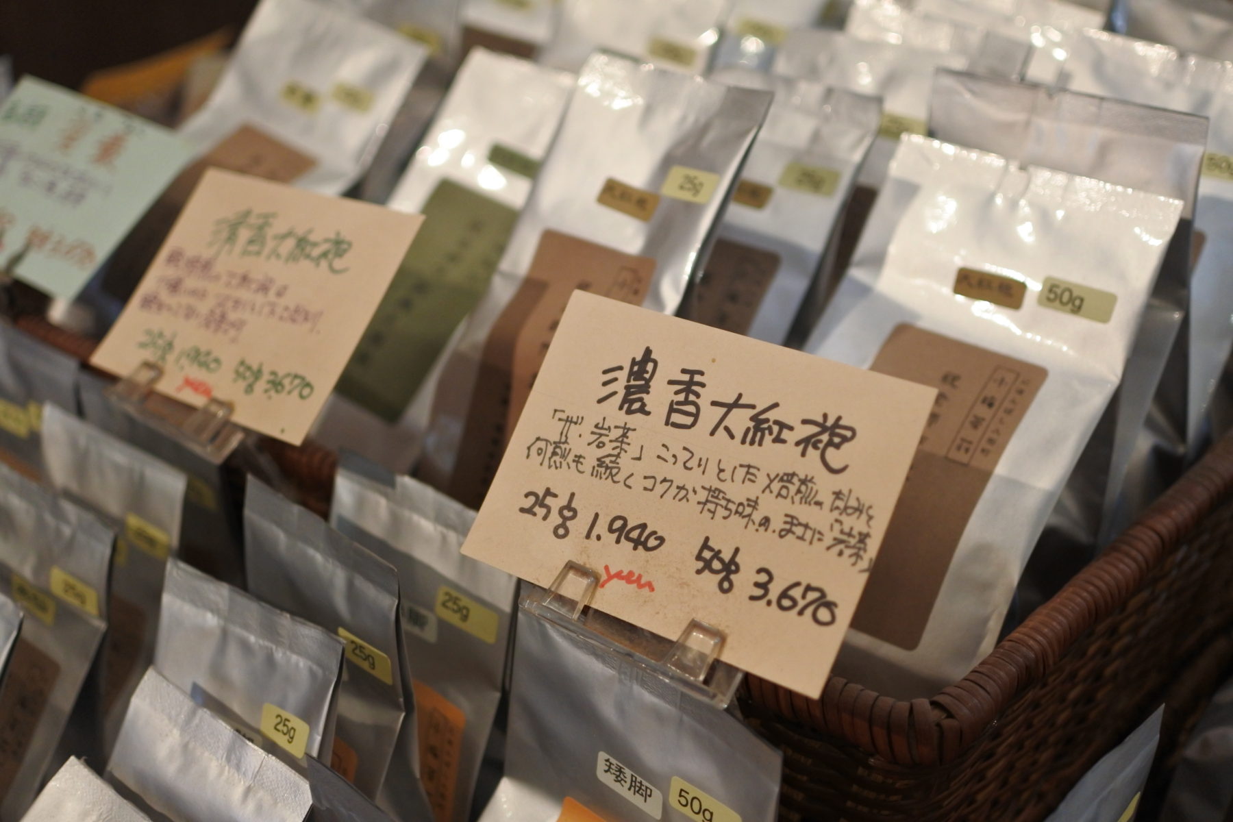 とても嬉しいことに、気になるお茶は試飲の相談が可能だ。お店側がこれと決めて試飲を出してくれることはあるが、試飲が相談できるお茶屋さんは、実はなかなかないと思う。「飲んでみないと分からないから」と、小梅さんと番頭さんは言う。お言葉に甘えて、「白瑞香」という武夷岩茶を試飲させていただいた。名前からして素敵なお茶だが、本当にお花かと思うほどの華やかな香りと軽やかな焙煎の風味が口いっぱいに広がり、全身の力が抜けていくのを感じた。