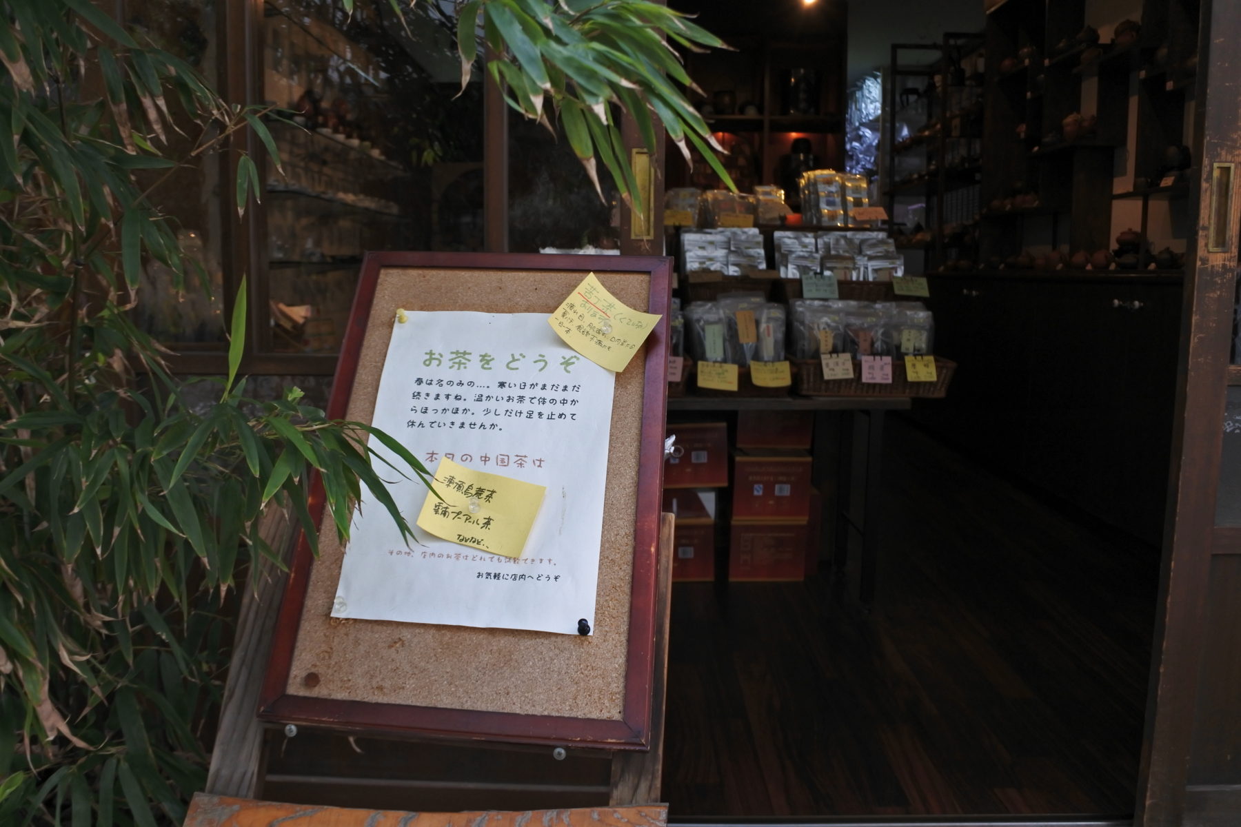 店主の優しい人柄が伝わってくる手書きの看板に誘われて、昔懐かしい引き戸をガラリと開けると、お茶の芳醇な香りにたちまち包まれる。