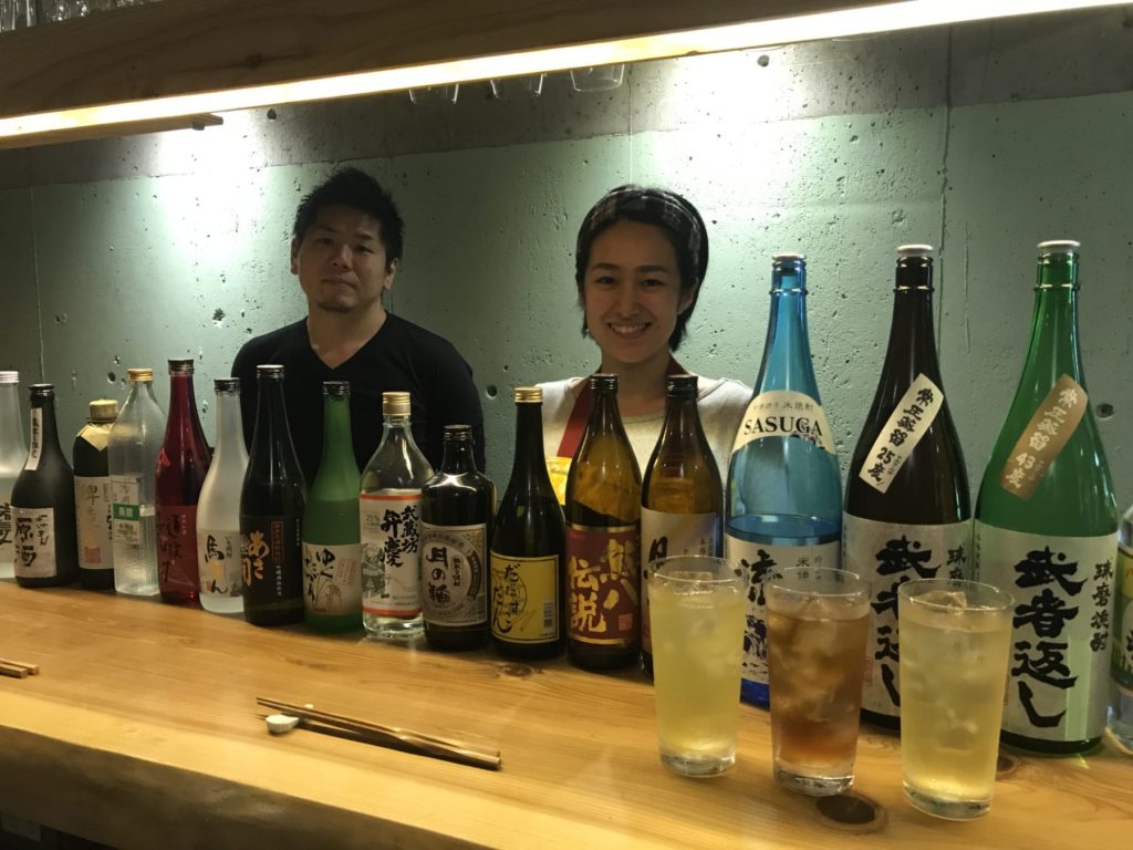 焼酎は麦、米など20種類ほどあって好きなものを選べるのも嬉しい。人気のお茶割りは、清涼感がありスッキリしている「茎茶×ジン」や、香ばしさが魅力の「ほうじ茶×ウイスキー」。女性には「抹茶×カシス」が人気とのこと。”今月のお酒”は季節に合わせたフルーツ系の甘いお酒を中心に月替わりで登場し、女性に好評だという。