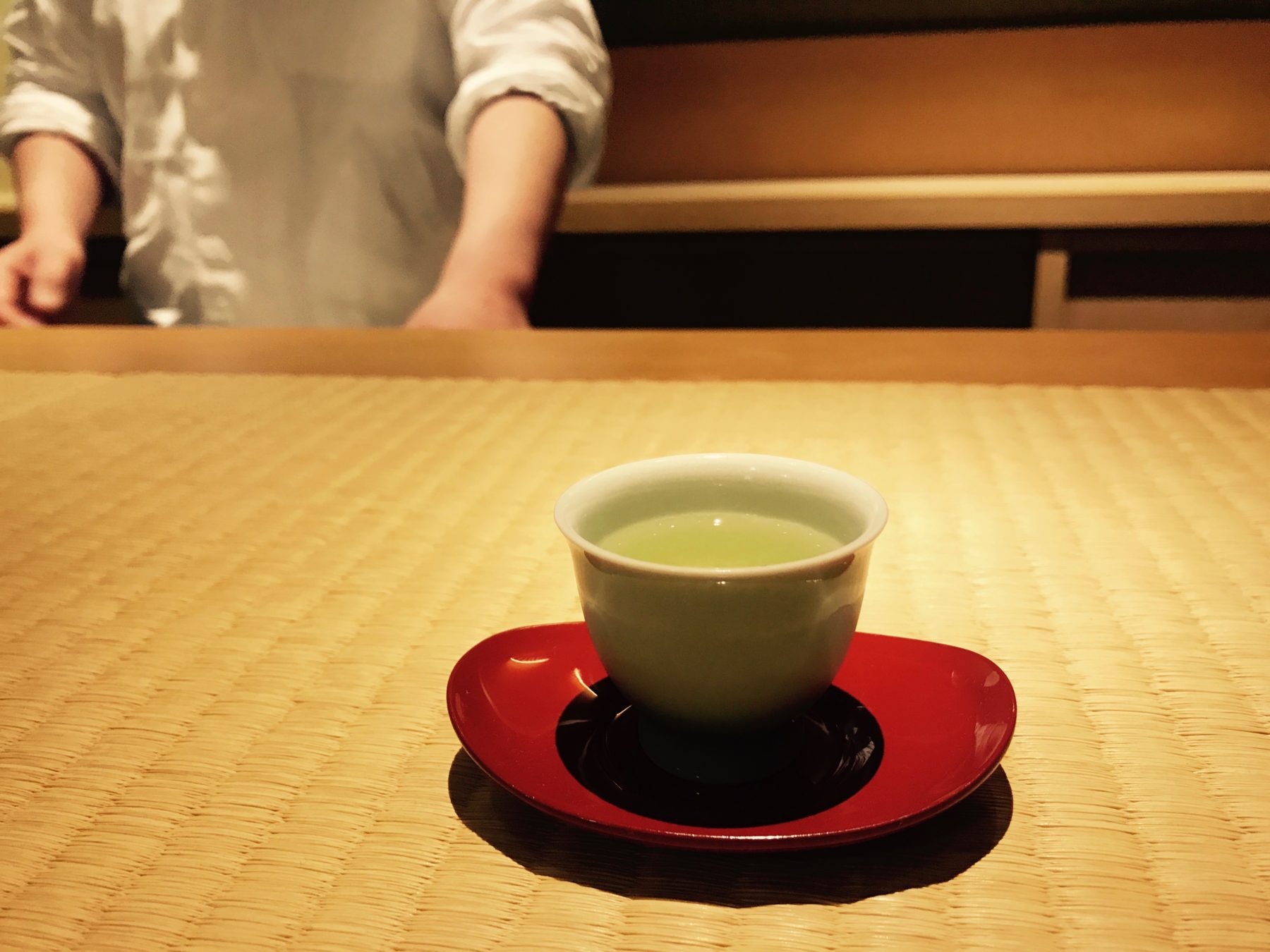 「鯛茶漬コース」を注文すると、鯛茶漬けの前に出てくるのは食前茶の「水出し玉露」。一晩寝かし、玉露らしい甘みが引き立つお茶です。