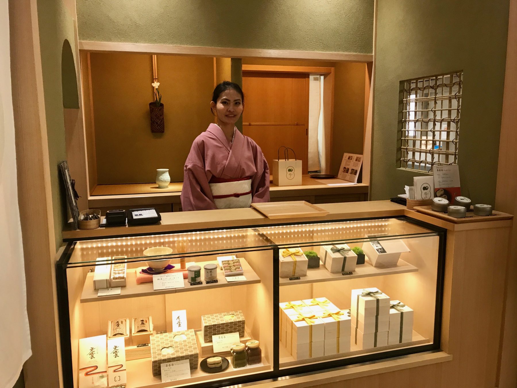 お茶漬けの後には、福寿園の抹茶と甘味を堪能。甘味は濃厚なクリームチーズに宇治抹茶の葛かんを重ねた和菓子「常葉白練」。まろやかな甘みがたまらない一品で、店頭でも購入できます。